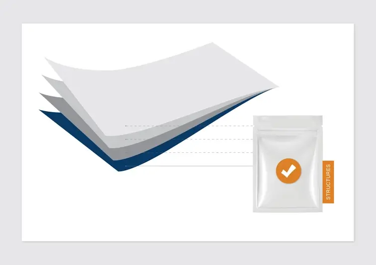 In the flexible packaging industry, a “structure” is a flat web made up of several different layers. Sometimes each layer is made of a different material, but other times, many layers will be the same material. Two structures could be nearly identical, but even the smallest difference in a layer’s material type, thickness, or even adhesive could mean they are best suited for different purposes. These various structures can be shaped and formed into many different types of packaging, but it is ultimately the layers within each that dictate how they should be utilised as packaging.