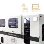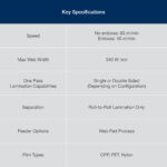 The Lamimaster 34 HSIN includes a rewinder unit, and operators can choose to combine the system with an unwinder to further streamline lamination. The included de-curling device helps ensure photos lie flat after they are laminated and cut, and each side of the unit’s nip rollers can be manually adjusted to keep film from developing wrinkles. To protect operators from injury, this fully enclosed unit includes several safety stops and automatically pauses lamination when its doors are opened. The system accepts web up to 340 mm wide and is ideal for producing digitally printed portrait photos, photo books and albums, calendars, cards, and more. Its high-speed induction (HSIN) heating roller ensures the laminator is ready to operate within 10 minutes after startup.